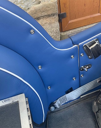 I have re-upholstered numerous vehicles of all shapes, sizes and ages: from a 1901 Delage, early Austin 7s, Morris Oxfords and Cambridges, through to early Porche 911s, Lotus Esprits, Bugattis, Jaguars and Rolls Royces, to name but a few. All vehicles have been sympathetically restored using the appropriate materials. My car upholstery services are available for clients in Felbridge and throughout Surrey.